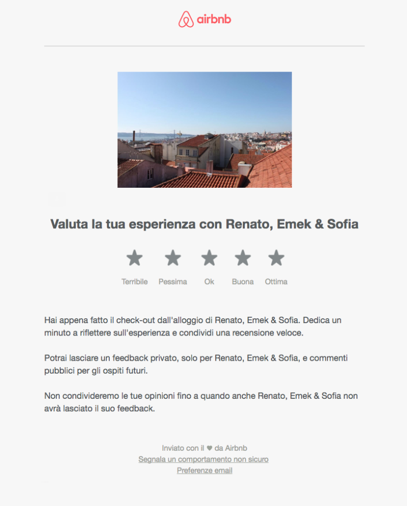 Y este es, en cambio, uno de los correos electrónicos transaccionales clásicos enviados por Airbnb.