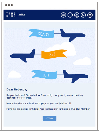 A los viajeros les encantan las sorpresas , y un correo electrónico especial deseándoles feliz cumpleaños o celebrando otro tipo de aniversario no pasará desapercibido. Un correo electrónico de feliz cumpleaños es un gran impulso para una nueva reserva . Mejor aún, si un descuento o cupón se suma a los deseos más cálidos.
