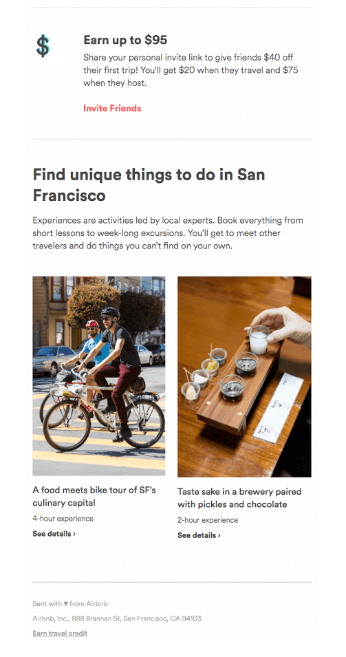 El siguiente correo electrónico es de Airbnb y notifica al cliente de su reserva. Para ahorrar espacio, hemos recortado la parte puramente transaccional y dejado la parte promocional.