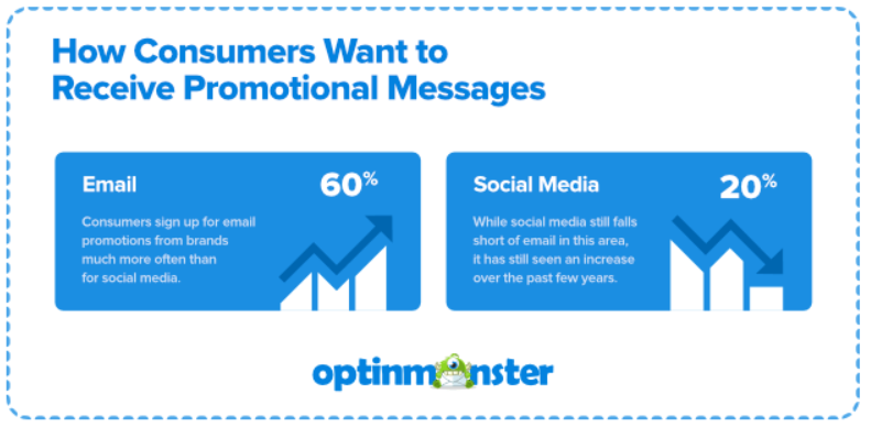 - El marketing por correo electrónico sigue siendo más efectivo que las redes sociales: aunque las redes sociales son muy populares, aún más personas recurren a los correos electrónicos para promociones que a las redes sociales. Los especialistas en marketing aún deben usar las redes sociales en sus planes de marketing, pero el marketing por correo electrónico aún genera más interés por parte de los clientes potenciales.