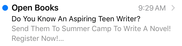 Open Books utiliza el texto del preencabezado como segunda línea de asunto. En dispositivos móviles, ¡el preencabezado en realidad tiene más espacio!