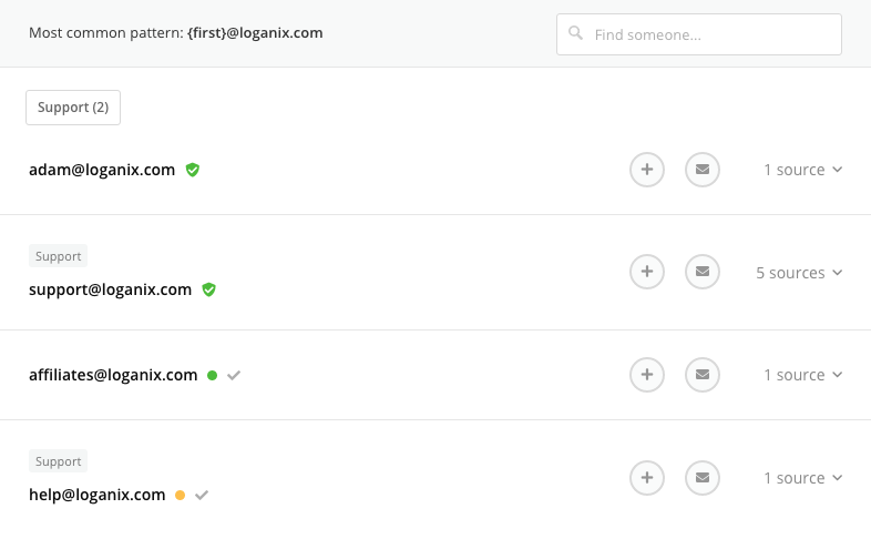 En el caso de un sitio web más grande con varias direcciones de correo electrónico, es mejor enviar su correo electrónico a una persona que se encargue de ese aspecto del negocio. Hunter categorizará las direcciones de correo electrónico según los títulos de trabajo del personal.