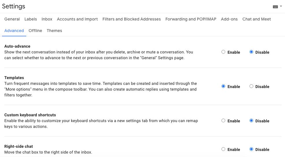 - Vaya aConfiguración (el símbolo de engranaje en el lado derecho de su cuenta de Gmail)