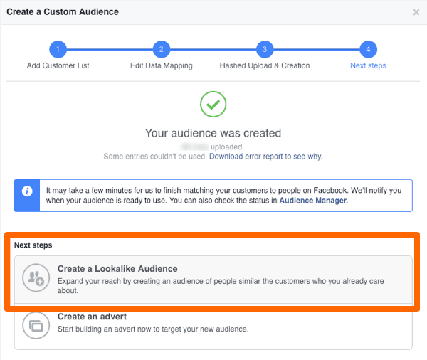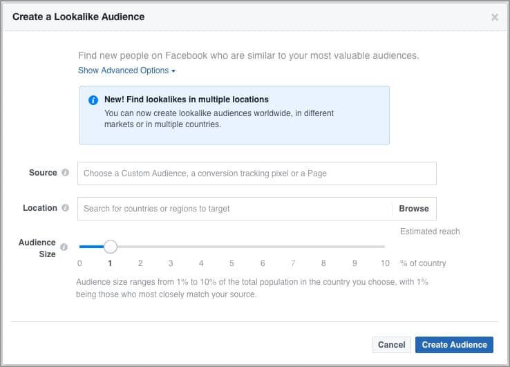Una vez que establezca lo anterior, estará listo para comenzar el proceso de creación de su audiencia similar a Facebook.