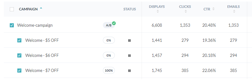 Este segundo ejemplo muestra los resultados de la prueba con diferentes ofertas de cupones. Probaron un cupón de $ 5, uno de $ 6, etc.
