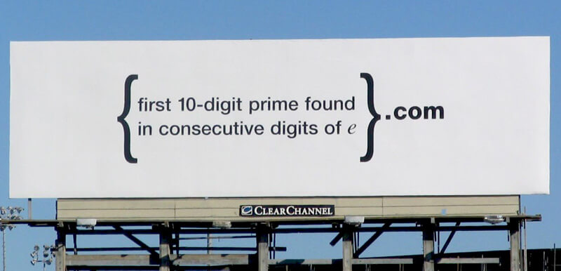 Si resolvió el acertijo en la cartelera, se encontraría en un sitio web que ofrece un nuevo acertijo matemático. Y al final de la cadena de acertijos matemáticos, descubriría que todo el esfuerzo era un anuncio de reclutamiento de Google.