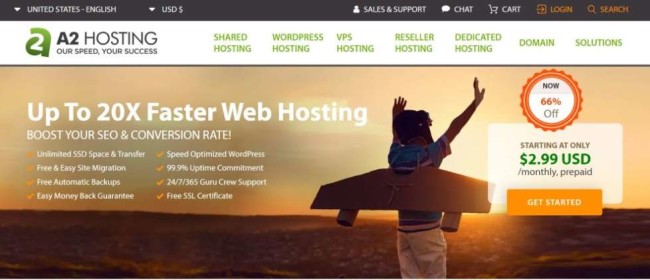 A2 Hosting ofrece alojamiento compartido de alta velocidad y alto rendimiento, alojamiento VPS y WordPress, así como alojamiento de revendedor, que proporciona cuentas de alojamiento individuales con etiqueta blanca.