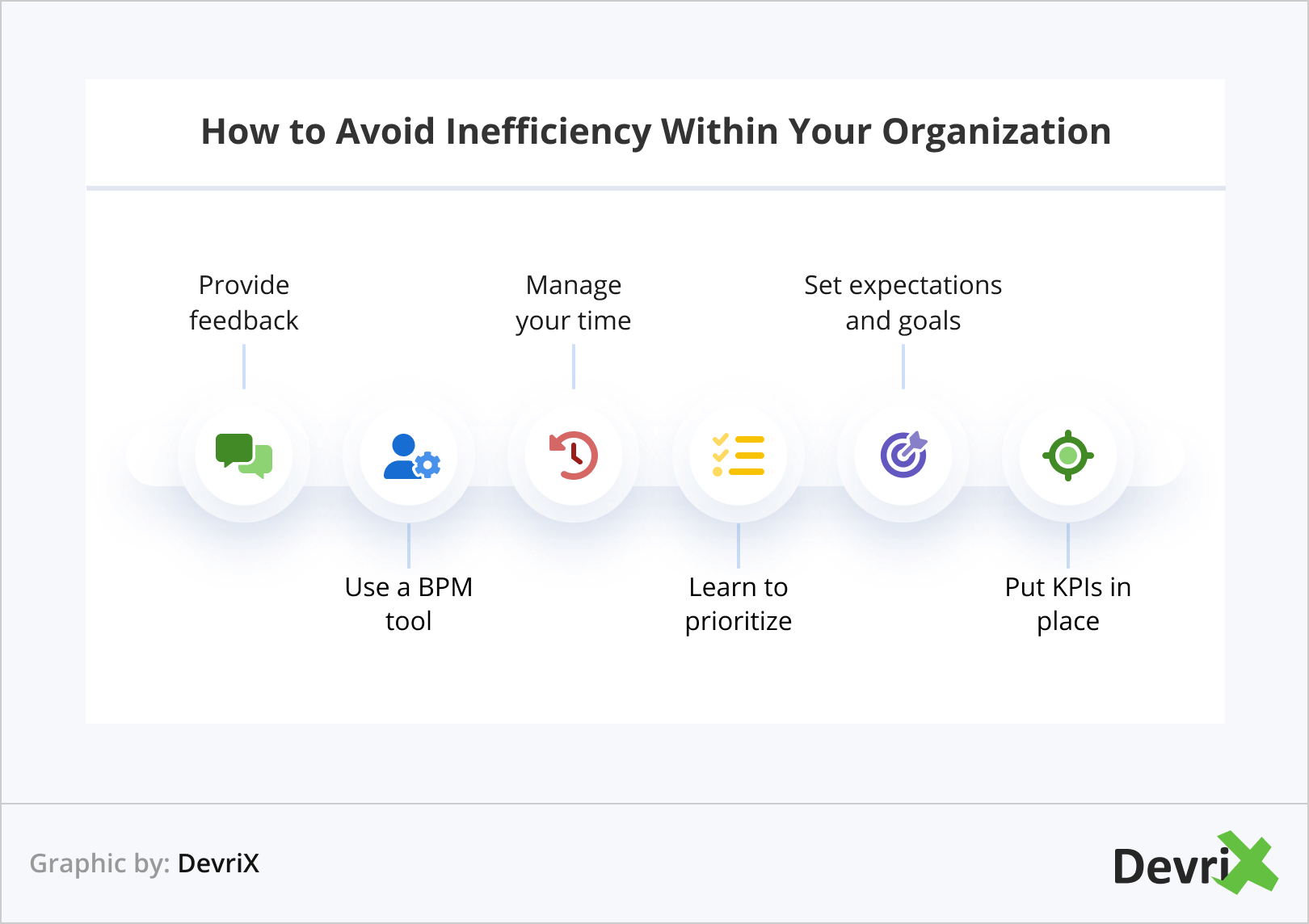 Aquí hay un par de maneras de evitar la ineficiencia dentro de la organización: