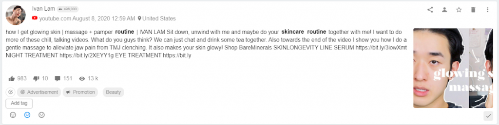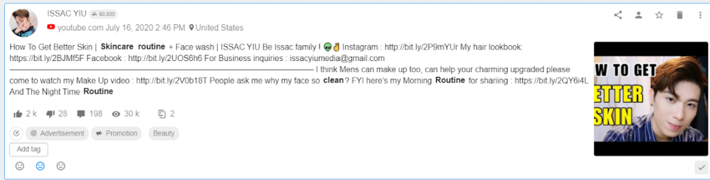 Presta atención a la diferencia en el compromiso entre Ivan Lam, que tiene 496 000 lectores, e Issac You, con 90 800 seguidores. Sí, 5 veces más personas se suscriben a Ivan, pero el compromiso es el doble en las publicaciones de Issac. Y puede tener todos estos datos justo frente a sus ojos con solo unos pocos clics en lugar de una larga búsqueda por todas partes.