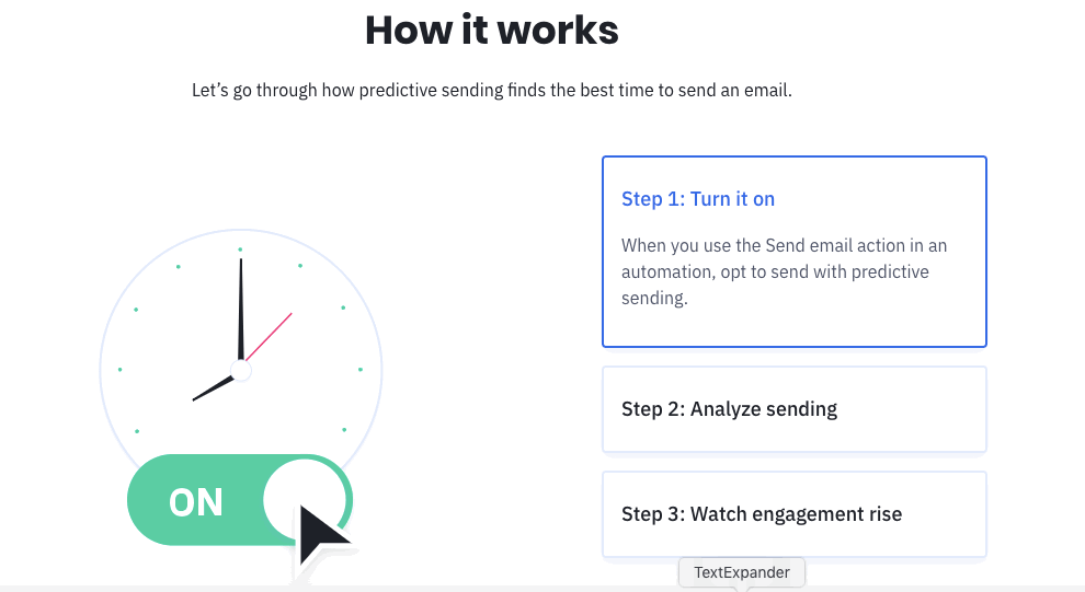 El envío predictivo (disponible en ActiveCampaign) hace que el contacto por correo electrónico sea tan fácil como 1, 2, 3.