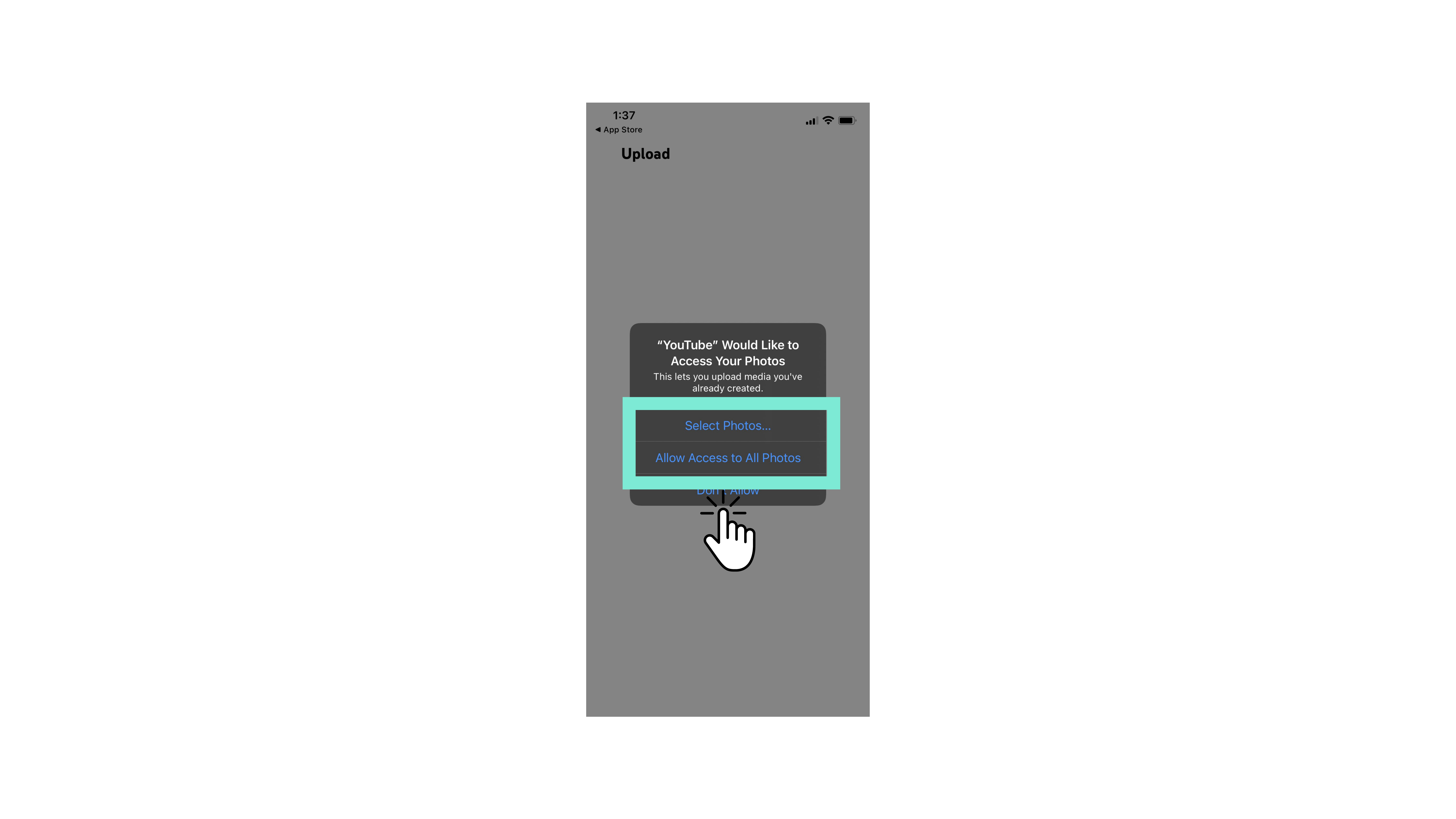 - Es posible que deba otorgar permiso a la aplicación para acceder a su cámara/fotos para continuar. Puede optar por permitir el acceso solo a fotos específicas o puede dar permiso a la aplicación para acceder a toda su biblioteca.