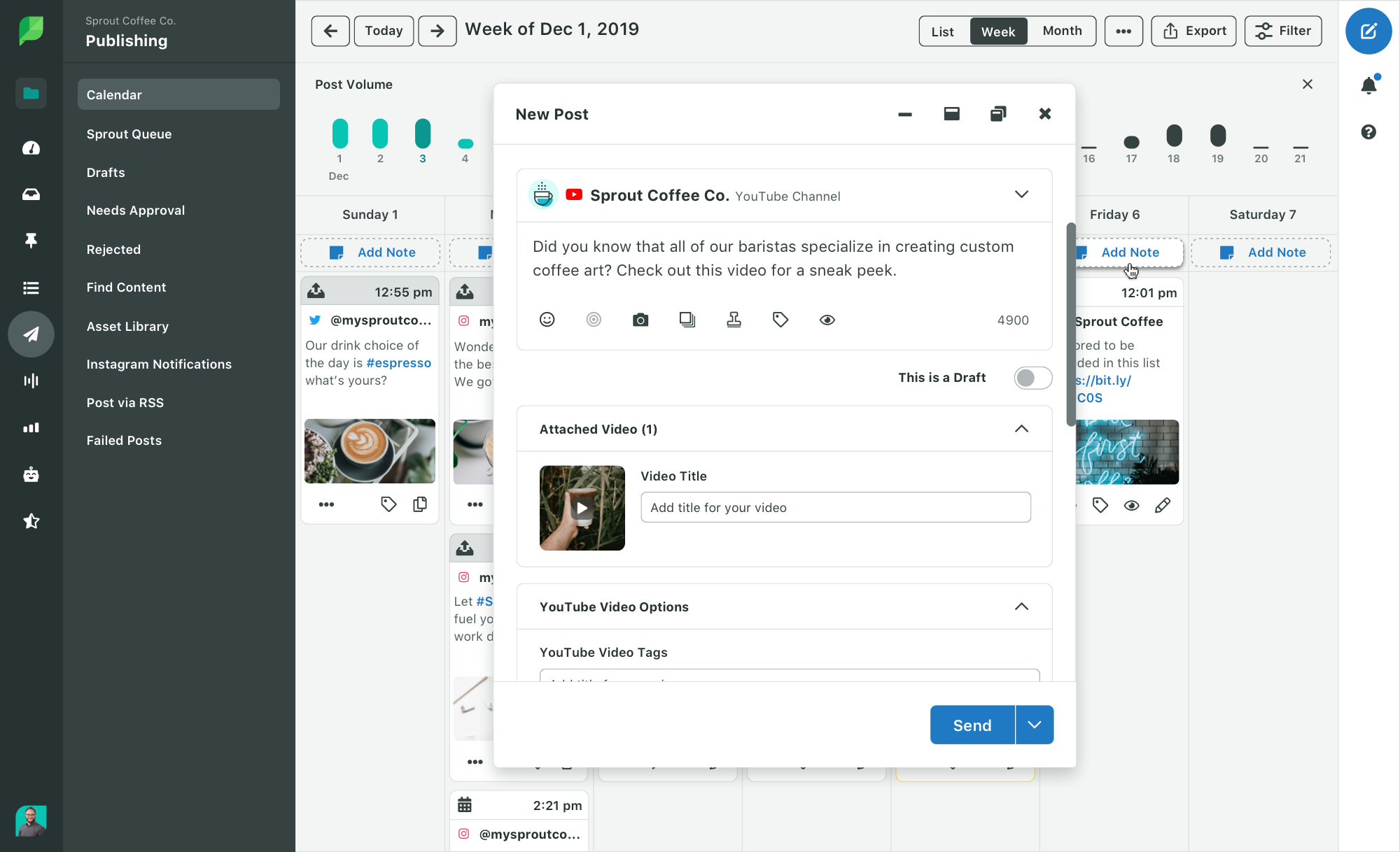 ¿Qué pasaría si pudieras hacer que tu proceso de publicación en YouTube sea aún más fácil? Sprout le permite publicar su contenido y analizar su rendimiento, además de responder a los comentarios y realizar un seguimiento de la participación, todo en una sola herramienta. A continuación, le mostraremos cómo subir videos a YouTube usando Sprout.