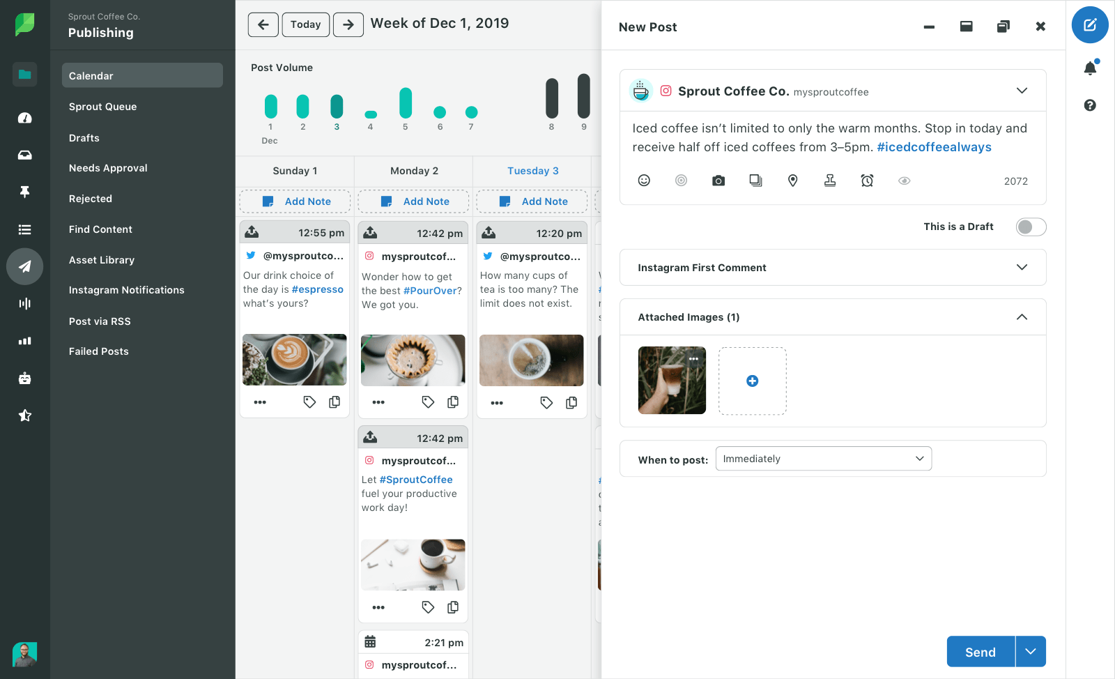 Y eso solo araña la superficie. Cuando se trata de publicar, Sprout Social es una potencia con funciones integradas como ViralPost que le permite programar contenido en los momentos en que es más probable que su audiencia participe.