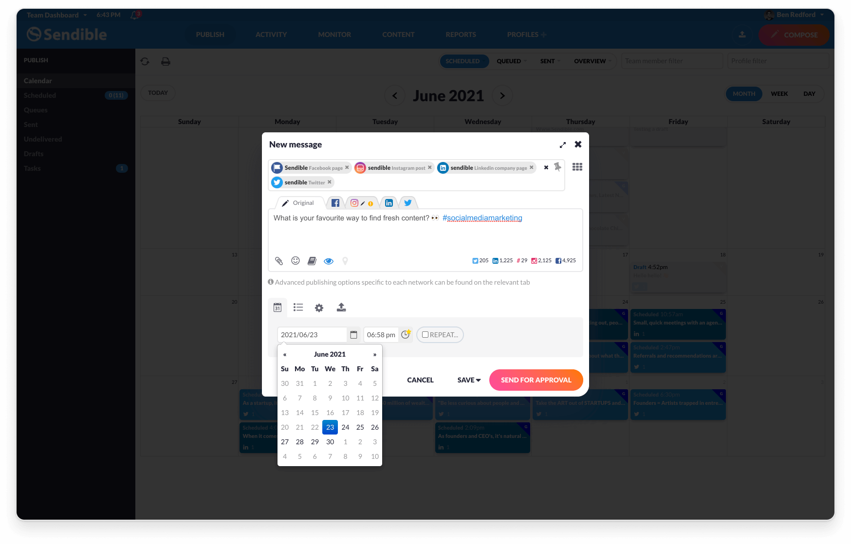 Junto con un calendario de contenido integral, puede administrar todas sus campañas sociales en una sola plataforma (incluidas las que están más allá de Instagram).