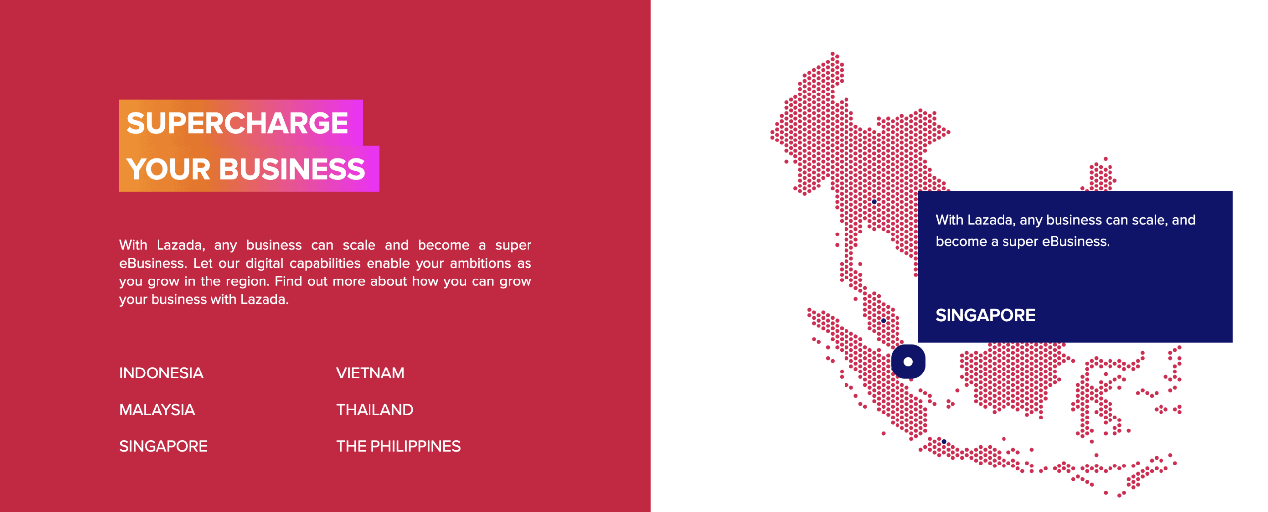 Lazada, por otro lado, es la principal plataforma de comercio electrónico en varios países, incluidos Indonesia, Malasia, Filipinas, Singapur, Tailandia y Vietnam . Lazada es el lugar ideal si desea vender sus productos en línea en estos países.