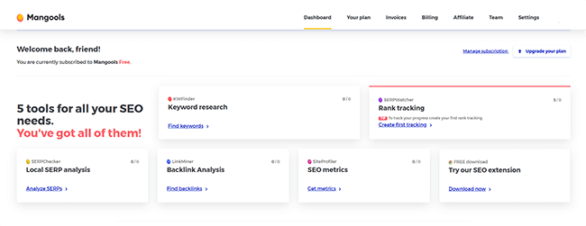 Mangools se compone de cinco herramientas diferentes: