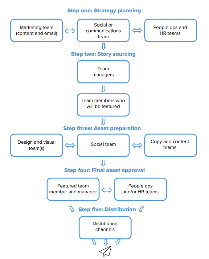 ¿Cómo contará las historias de sus empleados? ¿Usarás contenido de video, fotos o publicaciones de blog? ¿Va a compartir a través de múltiples canales? Determine esto con anticipación y cree solicitudes claras de recursos visuales para los equipos que respaldan su serie.