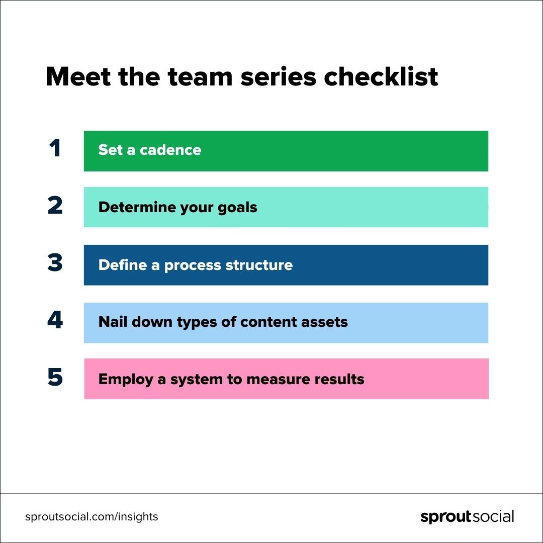 La consistencia es clave para construir una serie exitosa en las redes sociales. Cree una lista de verificación del proceso para que el proyecto se mantenga encaminado y mantenga a todos los miembros del equipo involucrados en la misma página. Debe incluir: