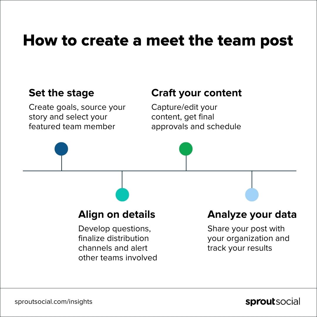 Pregúntate qué objetivos quieres que logre esta publicación específica. ¿Cómo encaja en los objetivos de su estrategia general de la serie Meet the Team?