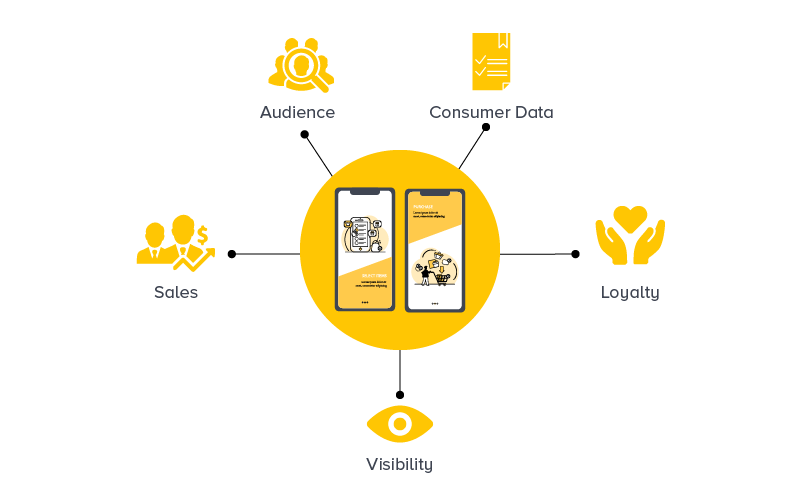 Las empresas a menudo buscan una plataforma efectiva a través de la cual puedan comercializar su marca. Las aplicaciones mejoran el conocimiento y la visibilidad de la marca y pueden aumentar estratégicamente la base de clientes.