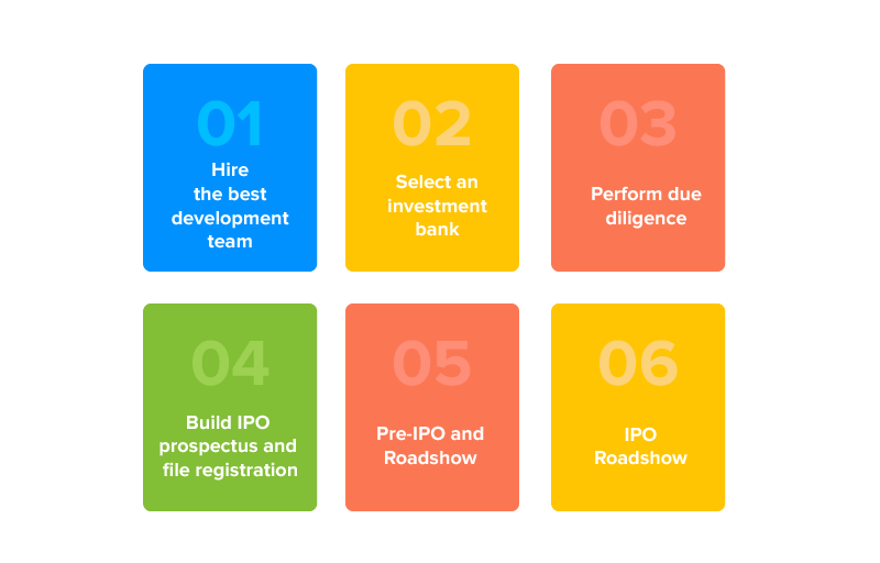 Entonces, si está buscando comenzar su viaje empresarial o hacer crecer su negocio, primero asegúrese de probar su producto desarrollando un MVP . Un MVP lo ayudará a obtener comentarios de los usuarios y determinar si su producto tendrá éxito o no. También ayuda a atraer inversores. Después de algunos años de lanzar su producto en el mercado, si cree que está listo para una OPI, hágalo. La IPO le permite identificar dónde se encuentra su startup y obtener acceso a un amplio capital que se puede utilizar para hacer crecer su negocio.