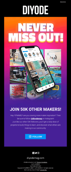 - Mayor presencia en las redes sociales: si sus seguidores en las redes sociales están estancados, puede encontrar un impulso promocionando sus cuentas de redes sociales en sus boletines, ofreciendo más canales para que sus clientes interactúen con usted.
