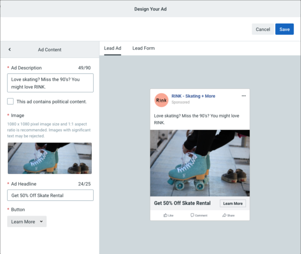 Facebook Lead Ads son anuncios de Facebook simples y enfocados que permiten a los usuarios registrarse en su lista de correo electrónico sin tener que salir de Facebook. Son súper efectivos para hacer crecer una lista de correo electrónico, solo necesita reservar un pequeño presupuesto para usarlos.