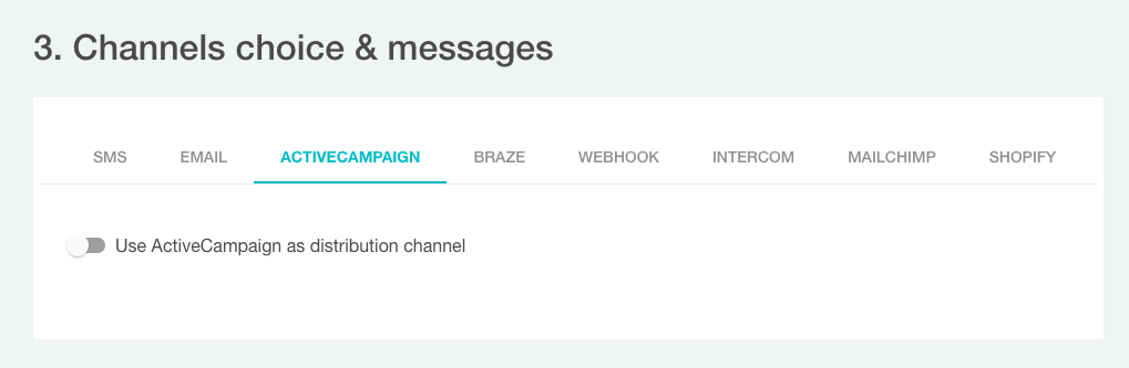 Para distribuir sus promociones, programas de referencia o lealtad, simplemente elija ActiveCampaign como canal al crear su campaña en Voucherify.
