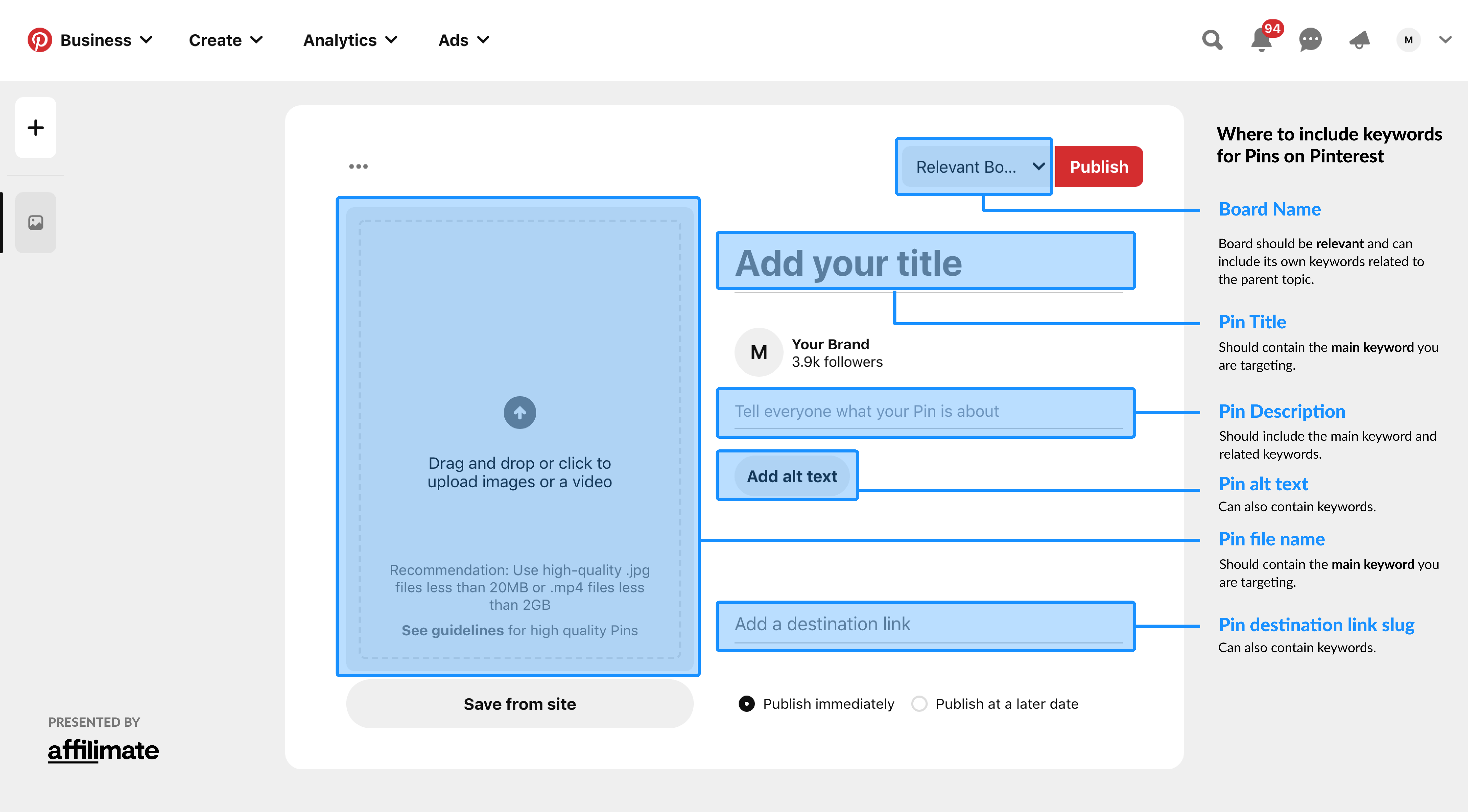 - Siempre agregue títulos y descripciones de pines ricos en palabras clave para SEO