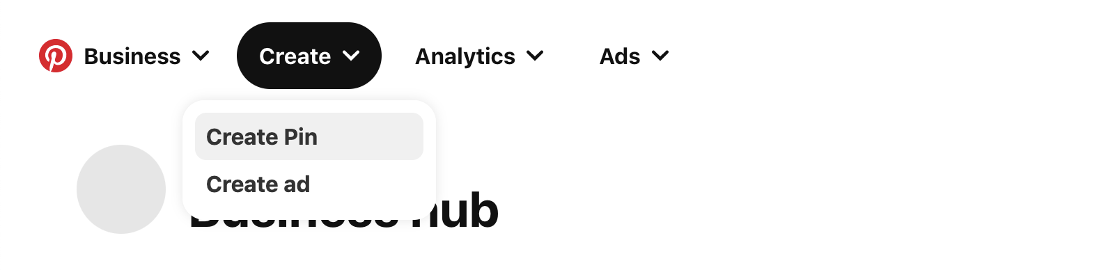 Agregar un pin al contenido de un afiliado es similar a crear un pin normal. Vaya al menú superior y haga clic en Crear> Crear pin como lo haría con cualquier otro pin.