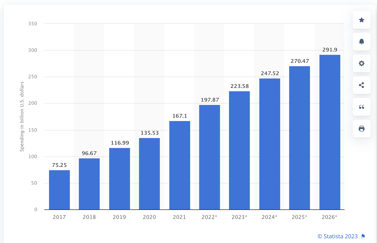Un informe de Statista afirma que el gasto en publicidad programática en Estados Unidos alcanzará un estimado de 290 mil millones de dólares estadounidenses para 2026: