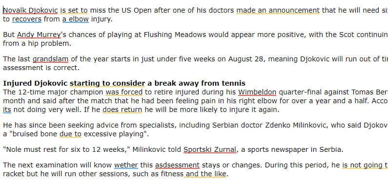 Cuando se presenta el resumen, puede ver los problemas identificados en su contenido resaltados en rojo, amarillo y azul: