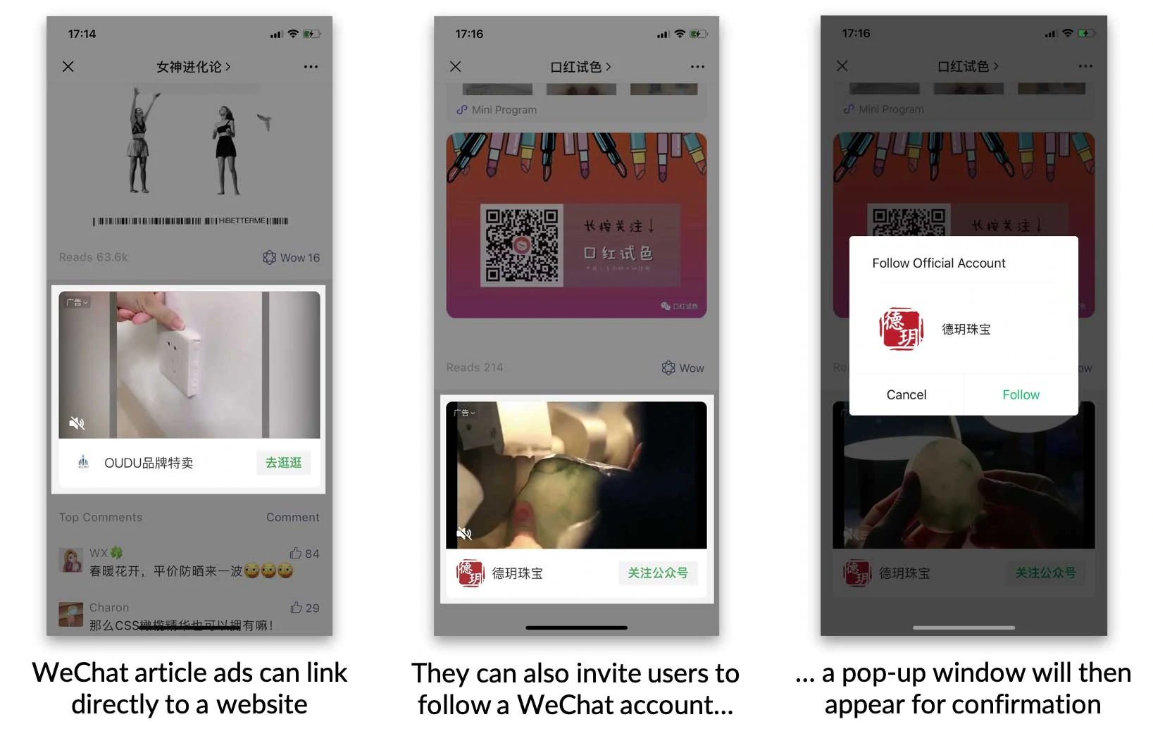 Los anuncios de artículos de WeChat se muestran en la parte inferior de un artículo de otra cuenta oficial de WeChat.