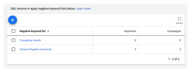 Como puede ver, agregar palabras clave a las listas de palabras clave negativas y aplicar estas listas a las campañas puede ser complicado y requiere experiencia en SEO. Por lo tanto, si no tiene esa experiencia interna, le recomendamos encarecidamente que se comunique con un Shopify Expert que pueda ayudarlo a configurar sus campañas de Google Ads y aplicarles palabras clave negativas.
