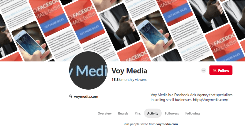 Aquí hay un ejemplo de la compañía Voy Media con sus diferentes sitios de redes sociales.