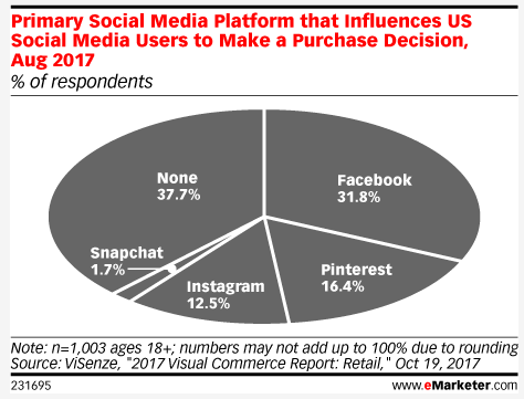 Este sitio social puede ser muy influyente en el crecimiento de su negocio en línea. El informe de emarketer muestra que Pinterest tiene una influencia del 16,4% en la toma de decisiones de compra para los compradores que usan las redes sociales.