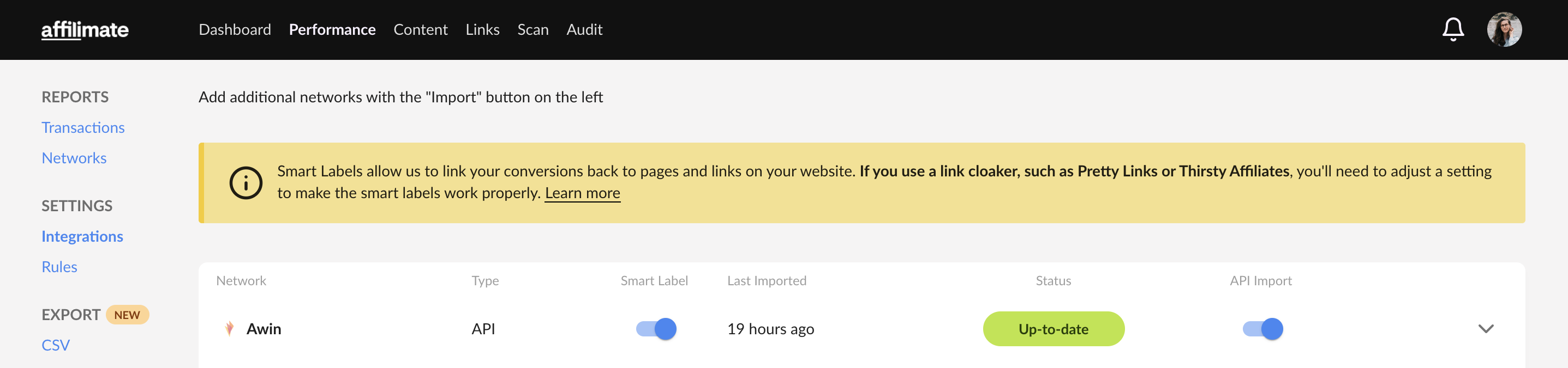 Affilimate lo ayuda a recopilar sus datos de afiliados (clics, ingresos y análisis de contenido) en un solo lugar para que pueda optimizar la conversión y monitorear el rendimiento.