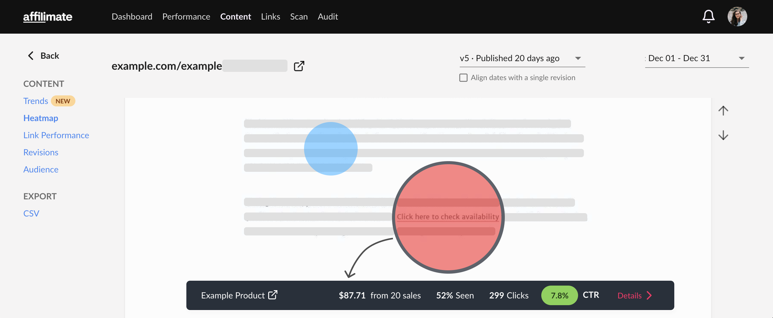 De esta manera, sabrá exactamente qué contenido se está convirtiendo, qué elementos visuales y CTA generan ventas, y puede replicar esas estrategias ganadoras de marketing de afiliados en su sitio web.