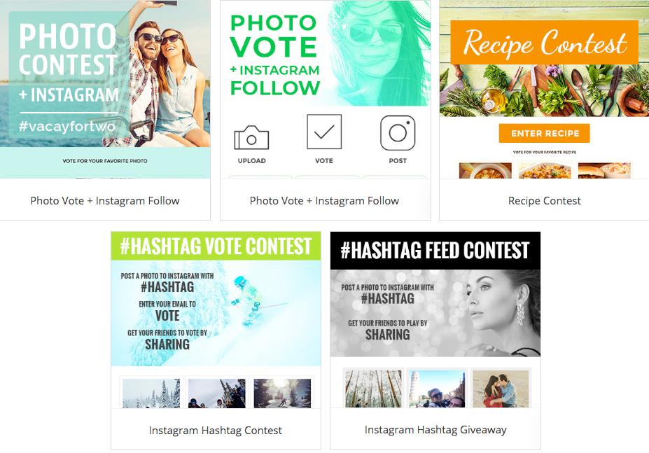 - Photo Vote + Instagram Follow (para agregar seguidores y / u obtener comentarios sobre nuevos productos)