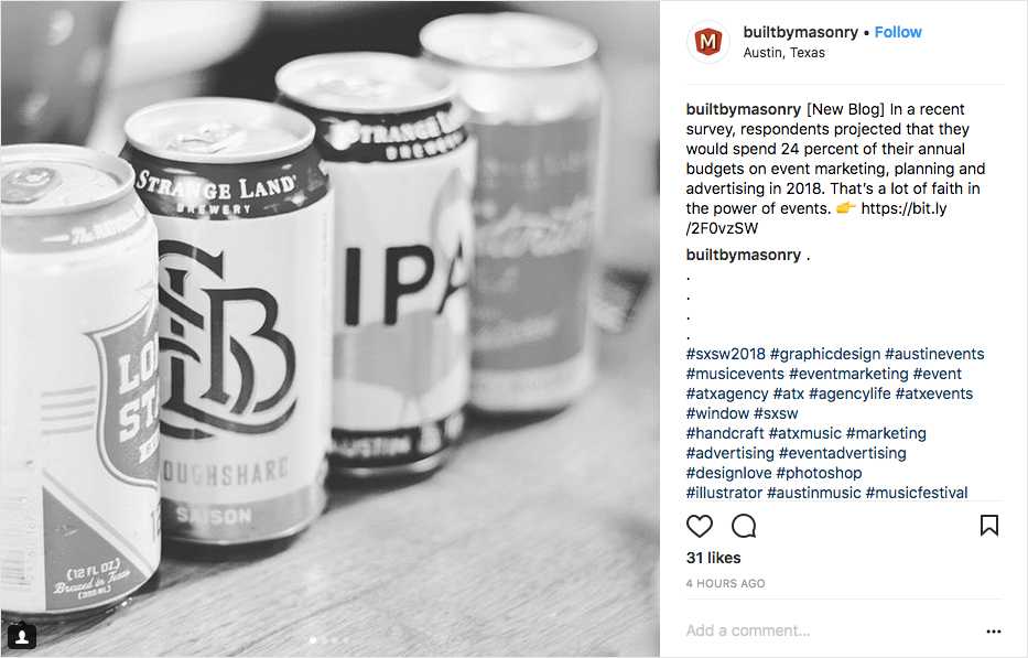 Built by Masonry usa #sxsw para compartir una útil estadística sobre eventos. Esta fue una forma creativa de participar en la conversación.