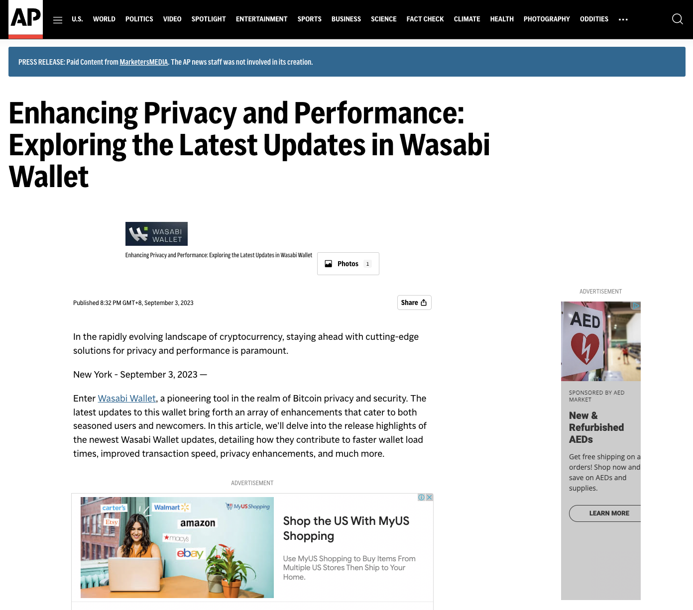 Un ejemplo de un comunicado de prensa sobre AP News enviado a través de MarketersMEDIA.
