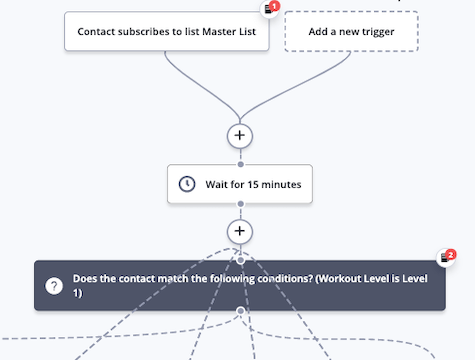 - Vérifiez le champ personnalisé pour décider de la campagne : cet IF/ELSE vérifie un champ personnalisé pour voir le niveau d'entraînement ou les objectifs d'entraînement du contact afin de lui envoyer la campagne d'entraînement appropriée.