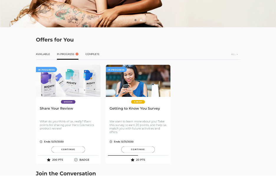 - Chaque membre de la communauté dispose d'un tableau de bord communautaire personnalisé avec diverses activités allant des enquêtes à l'échantillonnage en passant par les discussions. Hero fait du partage d'avis sur un produit une activité permanente disponible pour les consommateurs satisfaits et a généré près de 2 000 avis sur des produits.