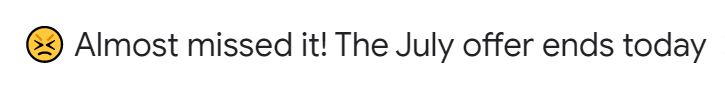 Un spécialiste du marketing par e-mail prudent utilise l'élément d'urgence pour créer la peur de manquer quelque chose. Ce que nous aimons dans cette ligne d'objet, c'est qu'elle a été envoyée au bon moment sans paraître trop insistante et commerciale. L'utilisation d'emoji a également soutenu le message. ?????????