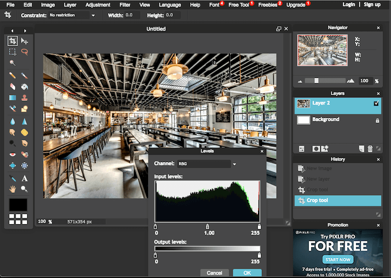 - Cet outil offre une large gamme d'outils d'édition d'images, y compris des ajustements de niveau.