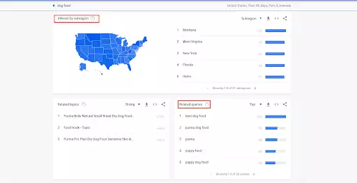 Disons que vous vivez dans une petite ville et que vous avez une animalerie. Lorsque vous constatez que le terme de recherche "nourriture pour chiens" a été populaire au cours des deux derniers mois, vous devez l'inclure dans vos mots clés.