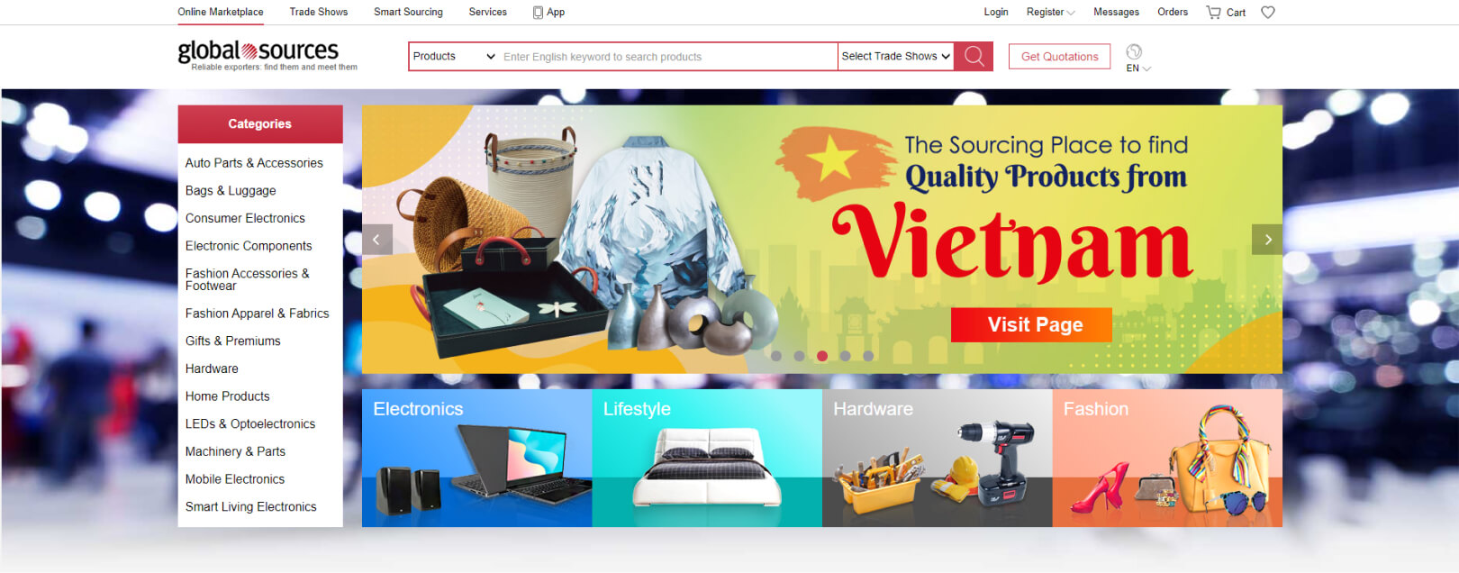 Global Sources est un marché de gros B2B fondé en 1970. Semblable à Alibaba, la plate-forme offre tout, des cadeaux, de l'électronique, de l'ameublement et des accessoires de mode à bien plus encore. L'avantage d'utiliser cet outil est qu'il fournit différents canaux pour établir des partenariats commerciaux.
