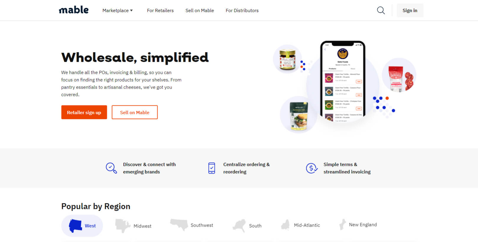 Les entrepreneurs B2B n'ont pas à s'inquiéter du traitement des e-mails, de la paperasse ou des formulaires de commande manuels, car Mable couvre tout cela. Et comme il se spécialise uniquement dans les aliments et les boissons, vous pouvez compter sur le fait d'atteindre le bon public en répertoriant vos produits sur ce marché de niche.