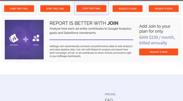 AdStage est suffisamment complexe avec ses prix et ses forfaits pour que je pense qu'il vaut sa propre section. Gardez à l’esprit que je n’ai indiqué que les prix de base ; ils peuvent proposer des remises ou des ventes à tout moment, alors consultez leur page de tarification pour obtenir les informations les plus récentes.