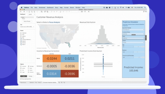 Tableau est un outil de visualisation de données qui aide les utilisateurs à analyser et à comprendre leurs données via des tableaux de bord et des rapports interactifs. Grâce à son interface intuitive glisser-déposer, Tableau permet aux utilisateurs de créer des visualisations sans codage. Tableau offre également des fonctionnalités avancées d'exploration des données, de narration et de collaboration, ce qui en fait un outil populaire pour les entreprises de tous les secteurs.